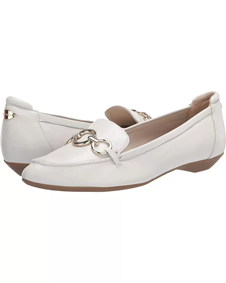 - A decorative metal bit, pointed moc toe, loafer-style silhouette, and easy slip-on wear lend comfort and polish to the Anne Klein® Ola flat.